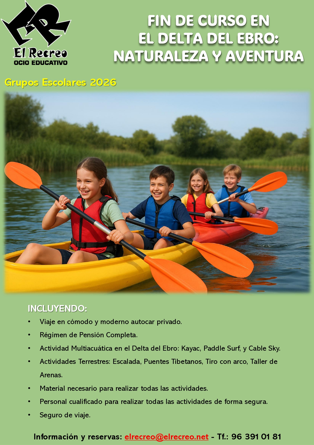 Actividad Multiacúatica: kayak, Paddle Surf, … y Actividades Terrestres: Escalada, Tiro con arco…